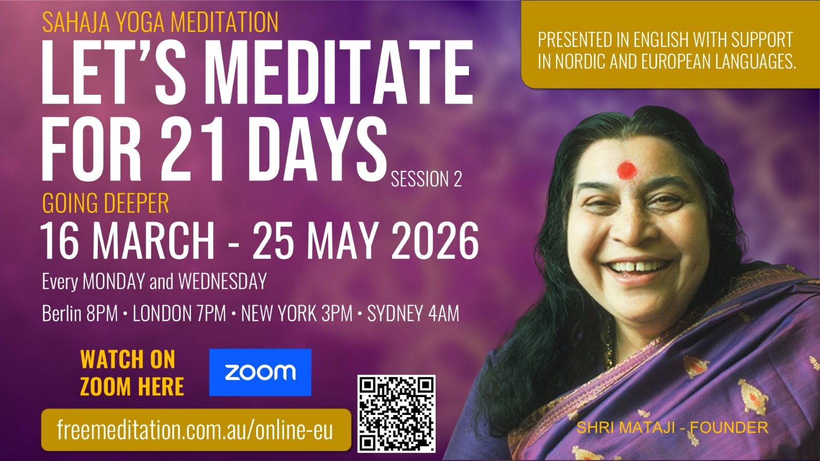 - This event is hosted by Sahaja Yoga meditation practitioners from the Nordic and European countries.